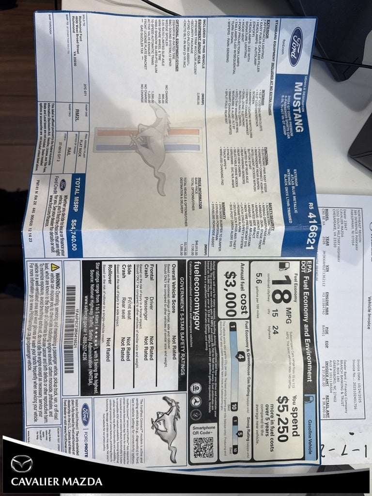 - Vehicle Name: Ford Mustang